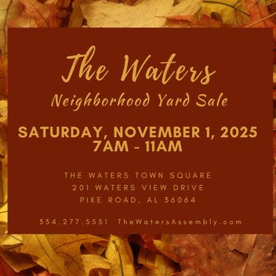 Join us for The Waters Neighborhood Yard Sale on Saturday, November 1, 2025,
