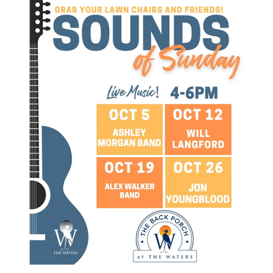 Join us every Sunday in October from 4:00–6:00 PM for live music at The Waters!