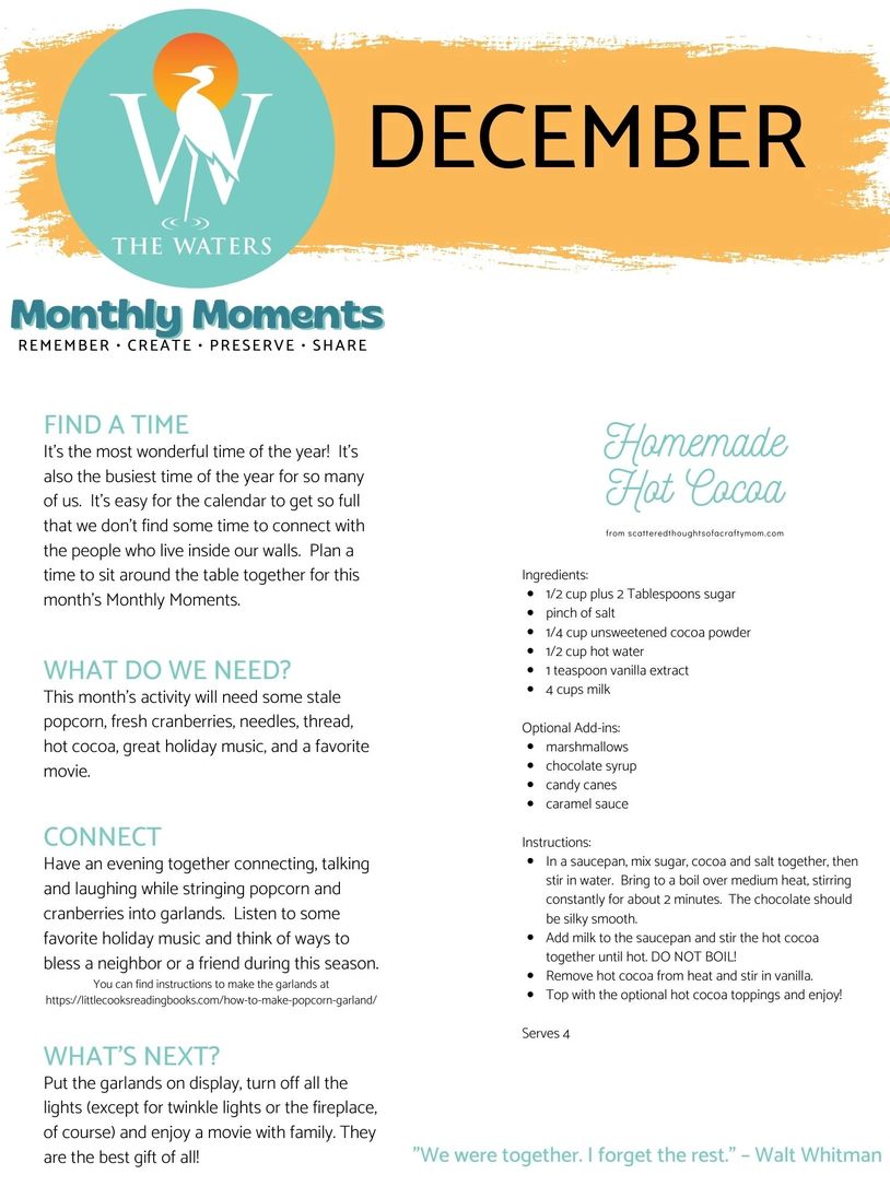 Every month we will give your family some great ideas on how to create moments together in this beautiful life you have created.